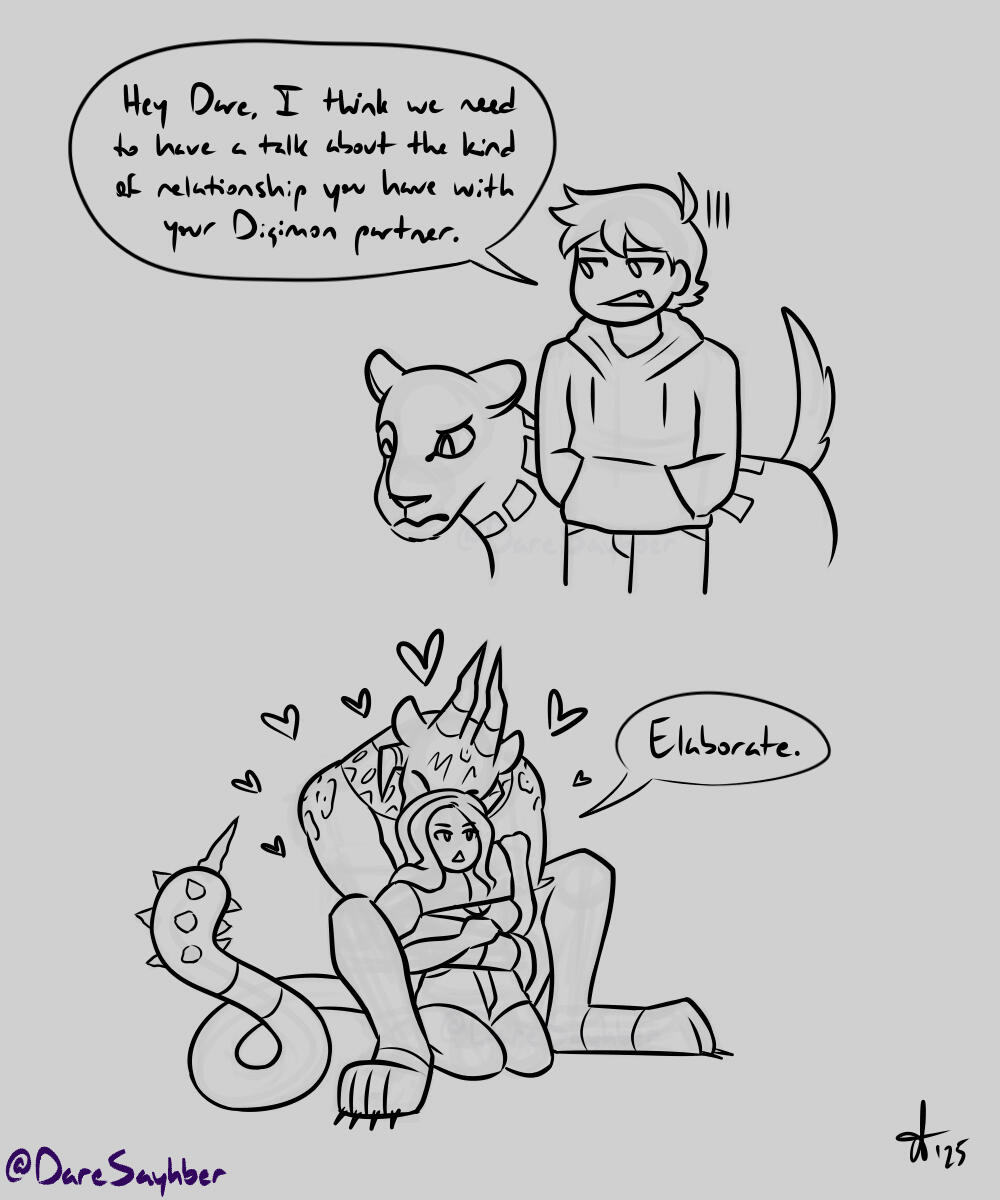 If you ever have questions, please feel free to message me!I highly recommend you contact me via Discord (@daresayhber), email ([email protected]), or my commission request form. I cannot reliably answer direct messages on my social media accounts because of bot spam.I must receive payment before I can start working on a client's commission. Full resolution and unwatermarked files will be provided to the client after paying any outstanding fees.
